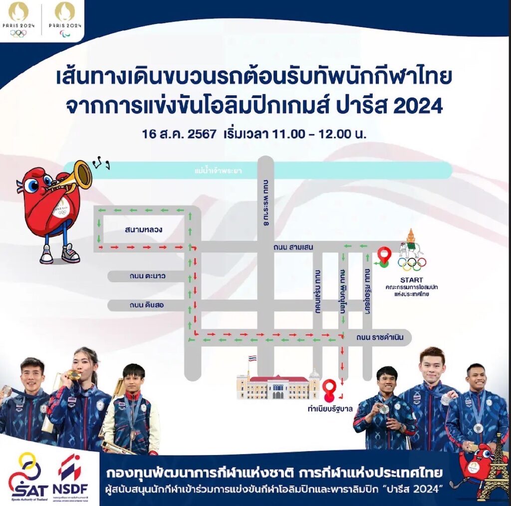 กองทุนพัฒนาการกีฬาแห่งชาติ ชวนคนไทยร่วมต้อนรับฮีโร่โอลิมปิกเกมส์ 2024 ขึ้นขบวนรถแห่ฉลองชัย และความสำเร็จ ในวันที่ 16 สิงหาคมนี้