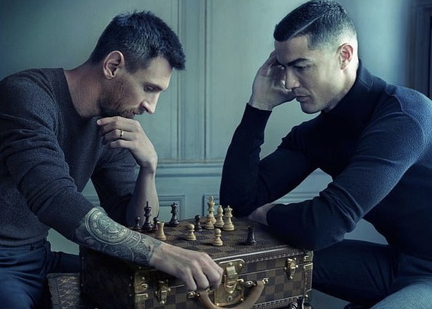 คริสติอาโน โรนัลโด และ ลิโอเนล เมสซี สร้างความฮือฮาด้วยการโปรโมทสินค้าร่วมกันเป็นครั้งแรก ในภาพโฆษณา Louis Vuitton ที่ทั้งคู่กำลังนั่งโขกหมากรุก