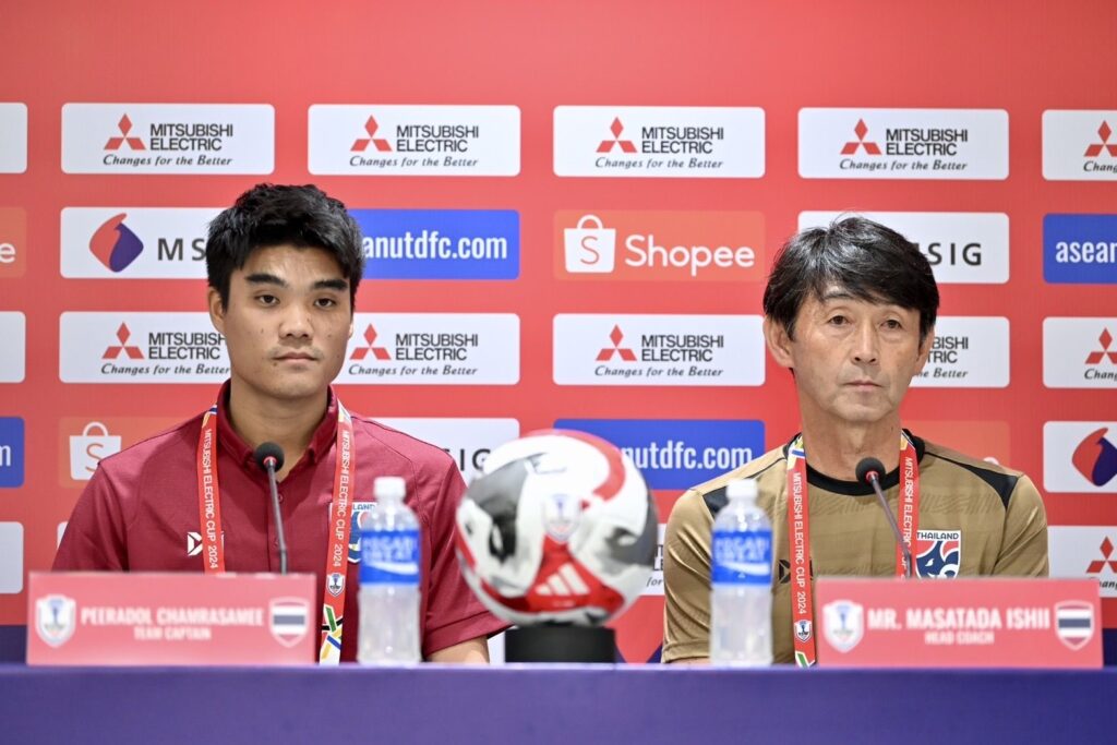 มาซาทาดะ อิชิอิ และ พีรดนย์ ฉ่ำรัศมี ร่วมแถลงความพร้อมก่อนเกม ทีมชาติไทย พบ มาเลเซีย วันเสาร์นี้ ที่ราชมังคลากีฬาสถาน