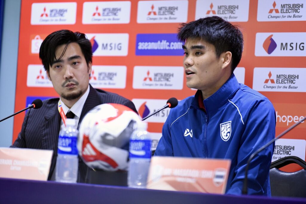มาซาทาดะ อิชิอิ และ พีรดนย์ ฉ่ำรัศมี แถลงข่าวก่อนนำ ทีมชาติไทย พบ เวียดนาม ในรอบชิงชนะเลิศ อาเซียน คัพ 2024 นัดที่สอง วันอาทิตย์นี้