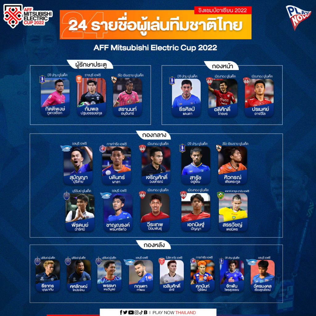 มาโน โพลกิง ประกาศรายชื่อ 24 แข้ง “ช้างศึก” เตรียมอุ่นเครื่องก่อนลุยศึกชิงแชมป์อาเซียน 2022 “มุ้ย-อุ้ม” นำทัพ “สรรวัชญ์” คัมแบ็ค