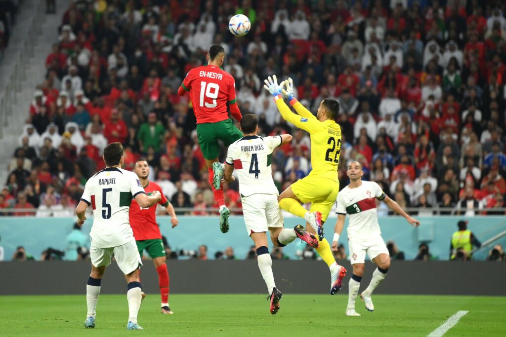 ครึ่งแรก โมร็อกโก สู้กับ โปรตุเกส ได้แบบไม่เป็นรอง และนาทีที่ 42 ยาเฮีย อัตติยัด-อัลลาห์ เปิดให้ ยุสเซฟ เอ็น-เนไซรี ขึ้นโหม่งตัดหน้า ดิโอโก คอสตา ผู้รักษาประตูโปรตุเกส บอลตุงตาข่าย ส่งให้ทีมจากแอฟริกาพลิกนำ 1-0 และจบ 45 นาทีแรกด้วยสกอร์นี้