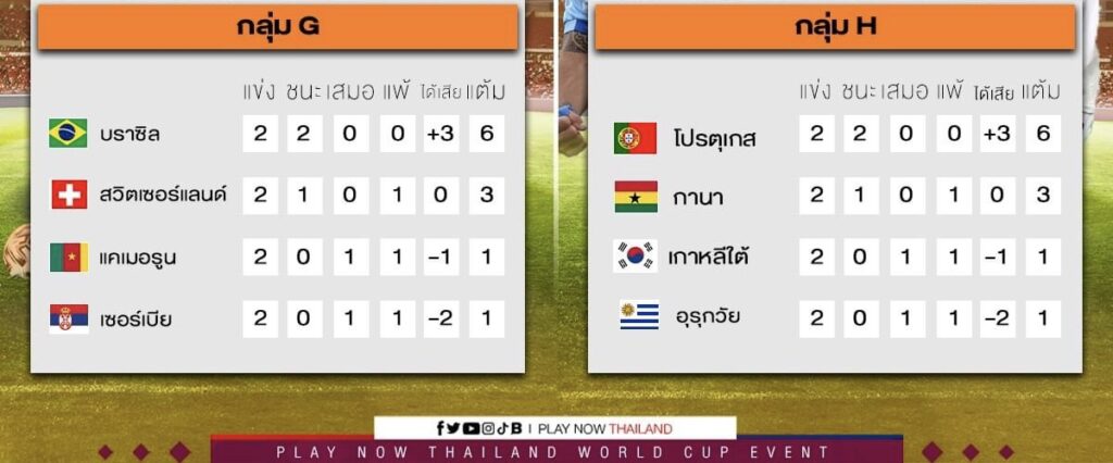 ฟุตบอลโลก 2022 ที่กาตาร์ เดินทางมาถึงวันสุดท้ายของรอบแบ่งกลุ่มแล้ว ไปติดตามสถานการณ์นัดชี้ชะของกลุ่ม G และ H ว่าเป็นอย่างไรกันบ้าง
