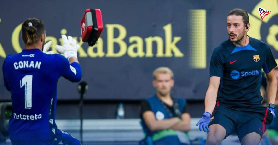 ทีมนักกายภาพของ บาร์เซโลนา รีบโยนชุดอุปกรณ์ปฐมพยาบาลไปให้ เฮเลมิอัส โคแนน เดเลสมา ผู้รักษาประตูของทีมคาดิซ