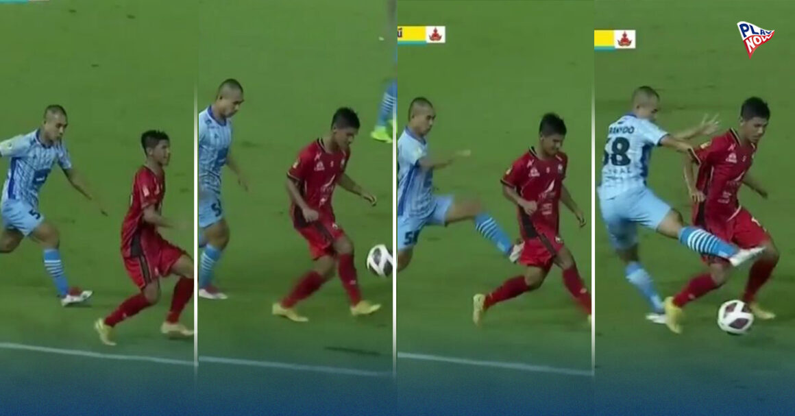 ศรัณญู อินต๊ะราช ผู้เล่นของอุดรธานีจะหยุดการโชว์ของ ธนา เอาไว้ด้วยการเตะแบบนี้หรือไม่
