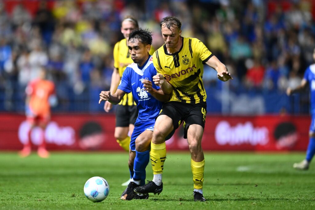 นาทีที่ 41 ดอร์ทมุนด์ ได้ประตูตีเสมออีกครั้งจากจังหวะหลุดเข้าเขตโทษของ ยูเลียน บรันด์ท แต่ยิงไม่ผ่านมือ สรานนท์ อนุอินทร์ พุ่งรับเอาไว้ได้