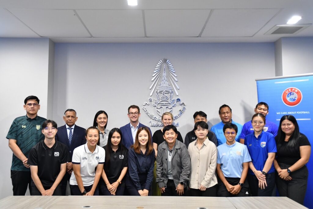 “มาดามแป้ง” นวลพรรณ ล่ำซำ นายกสมาคมกีฬาฟุตบอลฯ ตอกย้ำการให้ความสำคัญกับฟุตบอลหญิงเต็มที่ ล่าสุด ต้อนรับคณะทำงานจาก ยูฟ่า และ เอเอฟซี หลังเดินทางมาจัดอบรมแผนพัฒนาฟุตบอลหญิง ภายใต้โครงการ AFC-UEFA Women’s Football Programme ระหว่างวันที่ 14-18 พฤศจิกายน 2567 ที่ผ่านมา ณ ห้องประชุมชั้น 2 อาคาร FA Thailand โดย ประเทศไทย เป็น 1 ใน 5 ชาติของทวีปเอเชีย ที่ถูกรับเลือกให้เข้าร่วมโครงการสำคัญครั้งนี้ ร่วมกับ ไต้หวัน , เวียดนาม , อุซเบกิสถาน และ เลบานอน