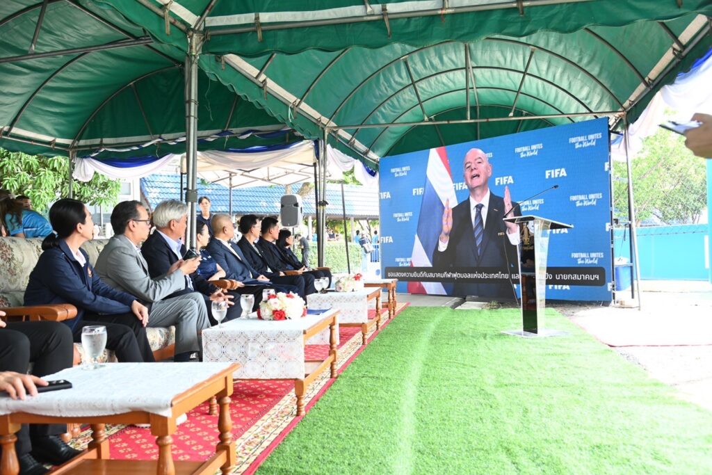 ด้าน จานนี อินฟานติโน ประธานสหพันธ์ฟุตบอลนานาชาติ หรือฟีฟ่า ได้ส่งคลิปพร้อมกล่าวว่า “ขอแสดงความยินดีกับสมาคมกีฬาฟุตบอลแห่งประเทศไทยฯ และมาดามแป้ง นายกสมาคมฯ ที่ได้เป็นส่วนหนึ่งของ 11 ประเทศกลุ่มแรก ที่ได้เปิดตัวสนามฟุตบอลขนาดเล็กในโครงการ FIFA Arena อย่างเป็นทางการ ซึ่งเป็นจุดเริ่มต้นในการเปลี่ยนชีวิตของเด็กกว่าหลายล้านคน”