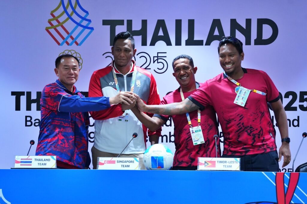 วันที่ 2 ธันวาคม 2568 เวลา 13.30 น. ณ ห้องแถลงข่าว ภายในสนามราชมังคลากีฬาสถาน ฝ่ายจัดการแข่งขันซีเกมส์ จัดงานแถลงข่าวก่อนการแข่งขันฟุตบอลชายในมหกรรมซีเกมส์ ของ กลุ่มเอ ประกอบไปด้วย ทีมชาติไทย, ติมอร์ เลสเต และ สิงคโปร์