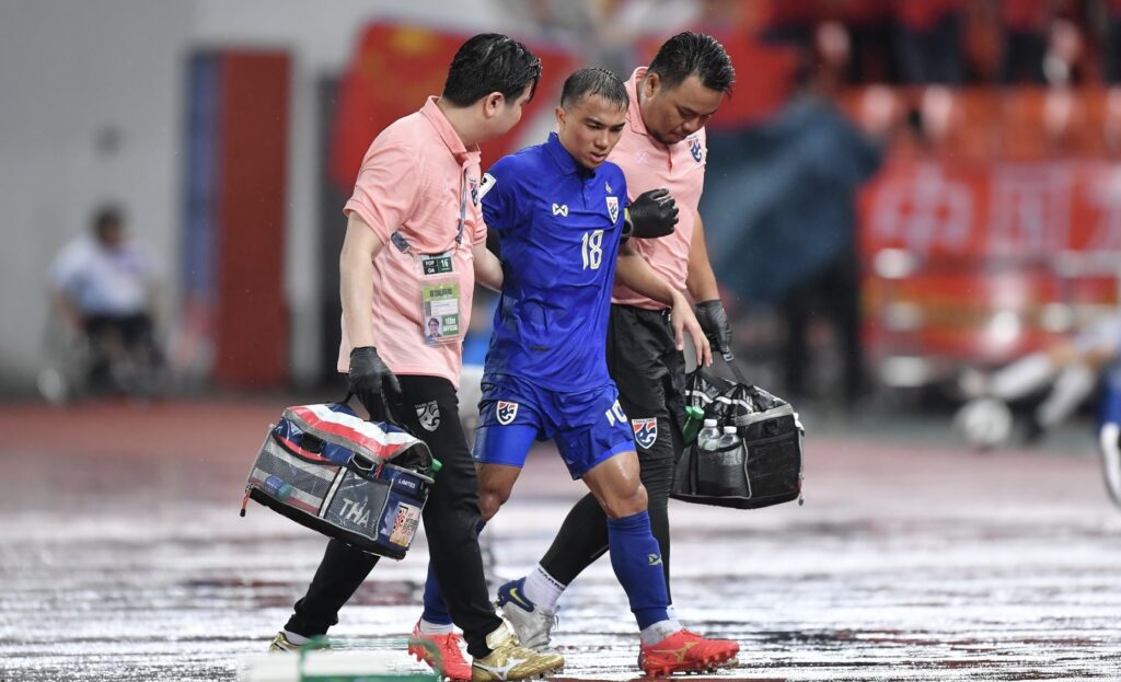 นาที 73 ทีมชาติไทย ต้องเสีย ชนาธิป สรงกระสินธ์ ได้รับบาดเจ็บจนเล่นต่อไม่ไหว
