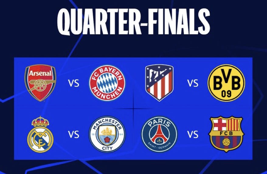ผลการจับสลากประกบคู่รอบ 8 ทีมสุดท้ายของถ้วยยุโรปใบใหญ่ ทีมแชมป์เก่า “เรือใบสีฟ้า” แมนเชสเตอร์ ซิตี้ จะต้องเจอกับ “ราชันชุดขาว” เรอัล มาดริด อดีตแชมป์มากสุด 14 สมัย