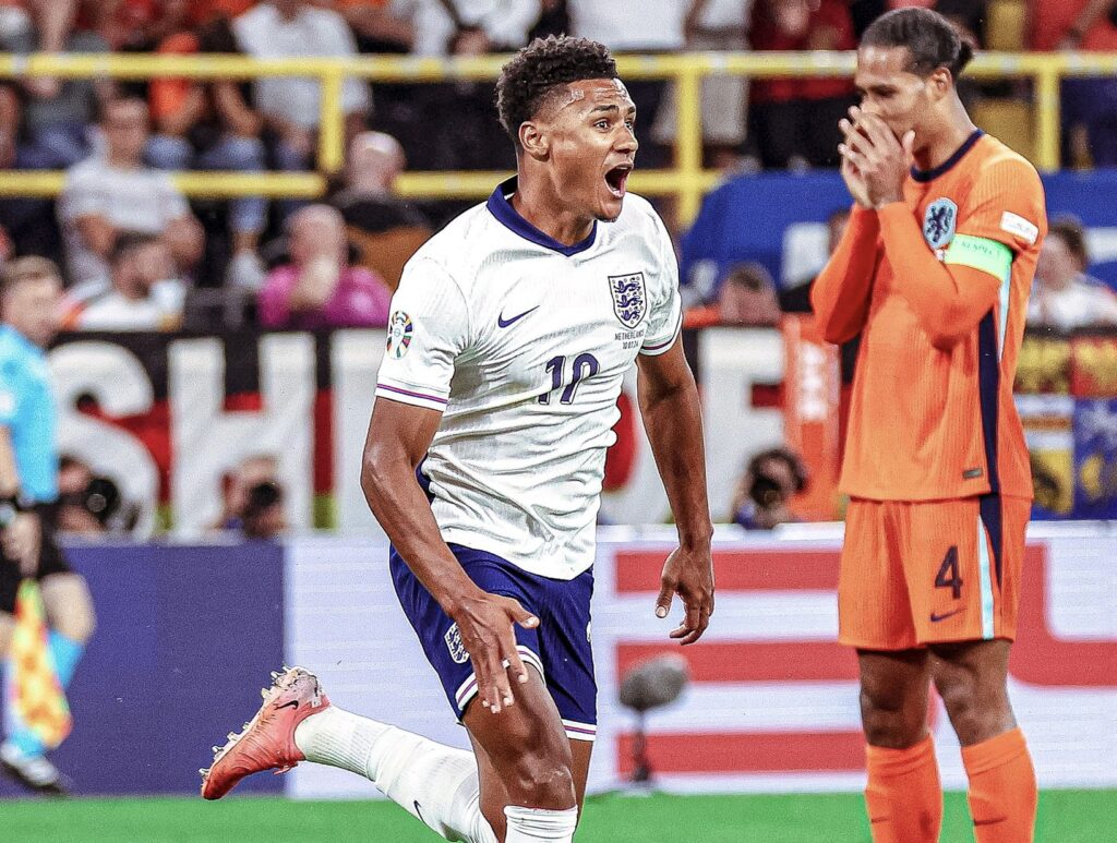 ฟุตบอลยูโร 2024 ได้คู่ชิงชนะเลิศแล้ว หลังจากทัพ “สิงโตคำราม” ทีมชาติอังกฤษ แซงชนะ ทีมชาติเนเธอร์แลนด์ 2-1 เแม้จะโดนนำก่อนจากการยิงของ ซาวี ซิมอนส์ ตั้งแต่นาทีที่ 7 แต่มาตีเสมอได้จากจุดโทษของ แฮร์รี เคน นาทีที่ 18 ก่อนที่ โอลลี วัตกินส์ ตัวสำรองจะกลายเป็นฮีโร่ซัดสุดคมนาที 90+1