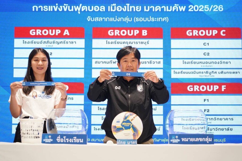 การแข่งขันฟุตบอลเยาวชน 7 คน “เมืองไทย มาดามคัพ 2025/26” เข้าสู่ช่วงโค้งสุดท้ายกันแล้ว ล่าสุดได้มีการจับสลากรอบแบ่งกลุ่ม รอบประเทศจำนวน 24 ทีมออกมาเป็นที่เรียบร้อย ภายใต้รูปแบบการแข่งขัน ทั้งหมด 6 กลุ่ม กลุ่มละ 4 ทีม นำทีมแชมป์กลุ่มทั้ง 6 กลุ่ม และ ทีมอันดับ 2 ผลงานดีที่สุด 2 ทีม ผ่านเข้าสู่รอบ 8 ทีมสุดท้ายต่อไป