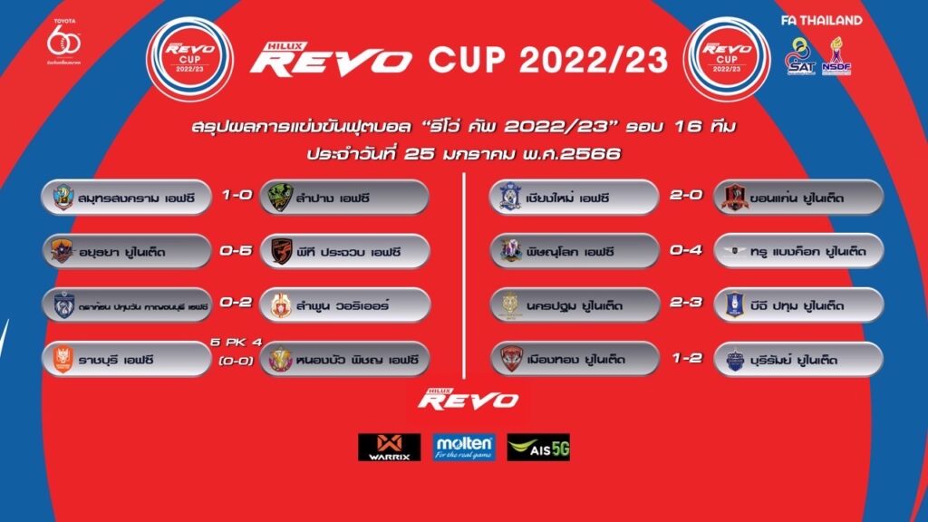 ศึกฟุตบอลถ้วย รีโว่ คัพ 2022/23 รอบ 16 ทีมสุดท้าย บิ๊กแมตช์ที่ธันเดอร์โดม สเตเดียม “กิเลนผยอง” เมืองทอง ยูไนเต็ด เปิดบ้านรับการมาเยือนของ “ปราสาทสายฟ้า” บุรีรัมย์ ยูไนเต็ด แชมป์เก่า