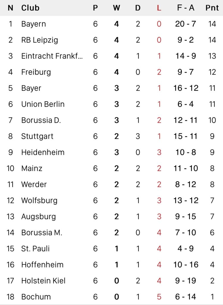 สรุปผลฟุตบอล บุนเดสลีกา เยอรมนี วันอาทิตย์ที่ 6 ตุลาคม 2567