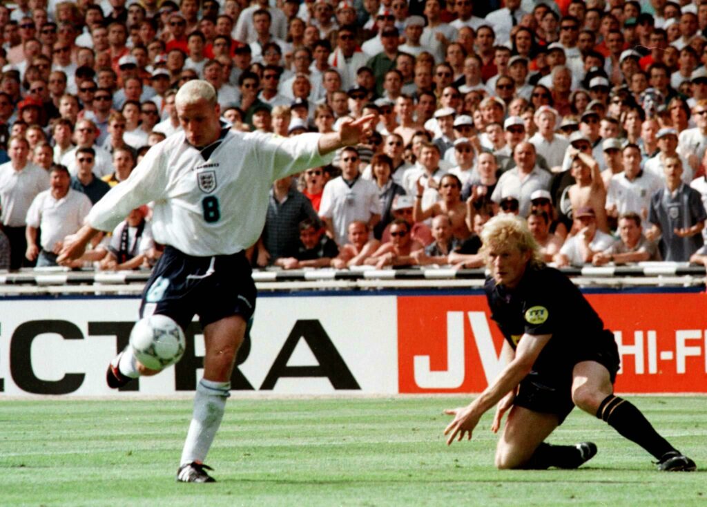 ในยูโร 1996 ที่อังกฤษเป็นเจ้าภาพ พร้อมสโลแกน Football Coming Home สิงโตคำรามจับสลากมาอยู่กลุ่มเดียวกับเพื่อนร่วมชาติทางตอนเหนือ ตั๋วเข้าชมเกมขายหมดภายในสองวันหลังจากผลการประกบคู่ ซึ่งเกมนั้นเกิดลูกยิงที่ยังอยู่ในหน้าประวัติศาสตร์ฟุตบอลยูโร เมื่อ พอล แกสคอยน์ กระดกบอลข้ามหัว โคลิน เฮนดรี กองหลังของสกอตแลนด์ แล้วยิงประตูที่ 2 ให้อังกฤษชนะสกอตแลนด์ไปได้ 2-0 ประตู