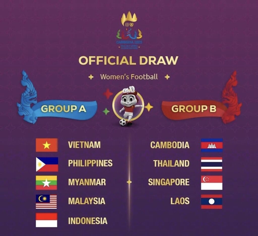 ขณะที่ ฟุตบอลหญิง มี 9 ชาติที่เข้าร่วมการแข่งขัน และแบ่งสายออกมา ดังนี้