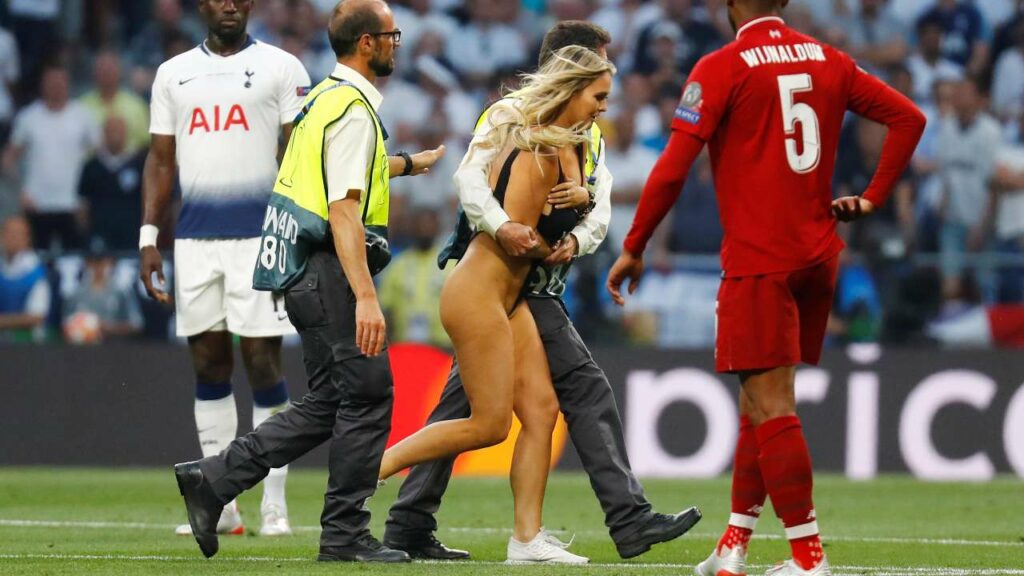 แต่ที่แฟนบอลของทุกทีมในค่ำคืนนั้นจะต้องเก็บเอาไปเป็นภาพจำ ก็คือการที่มีผู้หญิงผมบลอนด์วิ่งใส่ชุดวาบหวิวลงมาในสนามพร้อมกับข้อความที่ต้องการสื่อ