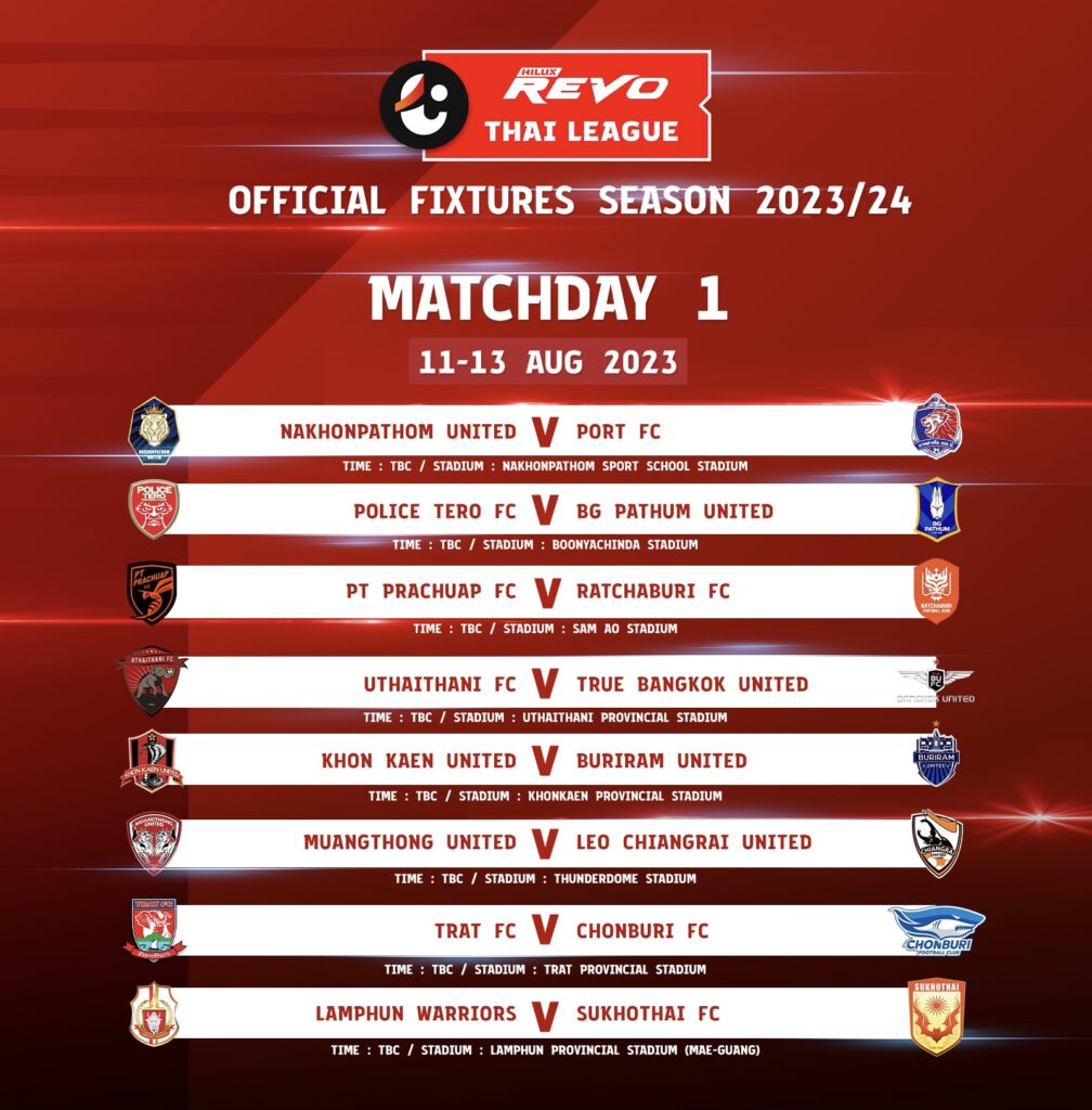 สำหรับโปรแกรมนัดเปิดฤดูกาล (แมตช์เดย์ 1) ในวันที่ 11-13 สิงหาคม 2566 มีดังนี้