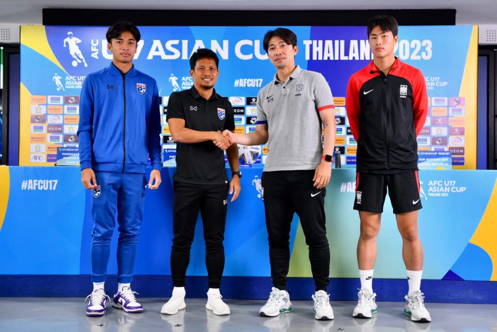 วันที่ 24 มิถุนายน 2566 เวลา 11.00 น. ณ ห้องแถลงข่าว ปทุมธานี สเตเดียม ฝ่ายจัดการแข่งขัน สมาพันธ์ฟุตบอลแห่งเอเชีย จัดงานแถลงข่าวก่อนการแข่งขันฟุตบอลชิงแชมป์เอเชีย รุ่นอายุไม่เกิน 17 ปี รอบ 8 ทีมสุดท้าย คู่ระหว่าง ทีมชาติไทย พบกับ เกาหลีใต้