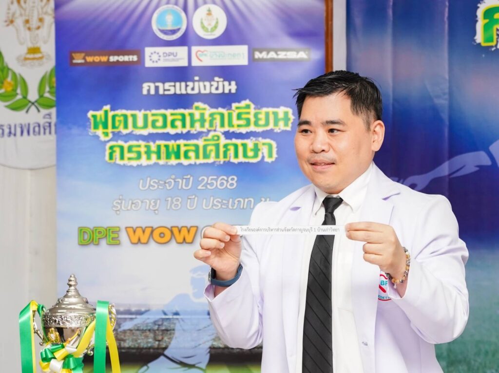 การแข่งขันฟุตบอลนักเรียนกรมพลศึกษา ประจำปี 2568 รุ่นอายุ 18 ปี ประเภท ข “DPE WOW CUP 2025” ได้จัดงานแถลงข่าวและจับสลากแบ่งสาย ที่ห้องศุภชลาศัย ภายในสนามศุภชลาศัย สนามกีฬาแห่งชาติ เมื่อวันศุกร์ที่ 28 พ.ย. 68 โดยมี นายสิโรตม์ มียศ ผู้อำนวยการสำนักการกีฬากรมพลศึกษา เป็นประธาน