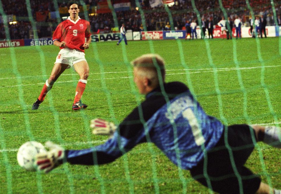 ในรอบนี้มาพบกับทีมแดนกังหัน เนเธอร์แลนด์ ขับเคี่ยวกันอย่างตื่นเต้น สนุกสนาน ผลออกมา 2-2 หลังต่อเวลาพิเศษแล้วยังสกอร์คงเดิม จำต้องต่อถึงฎีกาไปดวลจุดโทษกัน ชไมเคิลเซฟลูกยิงของ มาร์โก แวน บาสเทน ดาวยิงระดับโลกชาวดัตช์ไว้ได้ สรุปผลสุดท้ายเดนมาร์กชนะเนเธอร์แลนด์ 5-4 ได้เข้าไปชิงชนะเลิศกับเยอรมนี แชมป์ฟุตบอลโลกครั้งล่าสุด