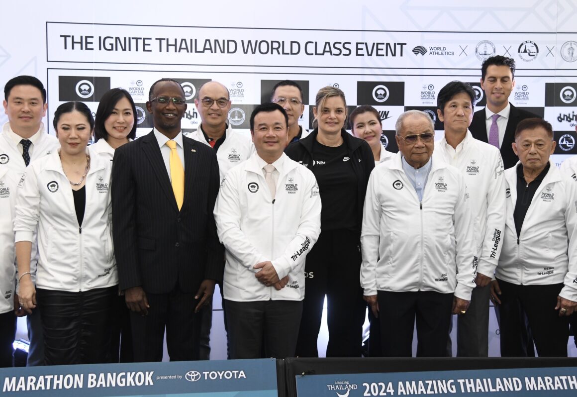 เมื่อวันที่ 24 ต.ค.67 ที่ Toyota Alive บางนา กม.3 นายสรวงศ์ เทียนทอง รมว.การท่องเที่ยวและกีฬา เป็นประธานแถลงข่าวการจัดการแข่งขันวิ่งมาราธอนส่งเสริมการท่องเที่ยวระดับโลก รายการ “อะเมซิ่ง ไทยแลนด์ มาราธอน แบงค็อก พรีเซ็นต์บาย โตโยต้า ครั้งที่ 7” หรือ “วิ่งผ่าเมือง” (Amazing Thailand Marathon Bangkok 2024 presented by TOYOTA) โดยมี นางสาวฐาปนีย์ เกียรติไพบูลย์ ผู้ว่าการการท่องเที่ยวแห่งประเทศไทย (ททท.), นายชัชชาติ สิทธิพันธุ์ ผู้ว่าราชการกรุงเทพมหานคร, มร.คิปทิเนสส์ ลินด์ซีย์ คิมโวเล เอกอัครราชทูตสาธารณรัฐเคนยาประจำประเทศไทย, มร.เอเลซิโอ ปุนชี ผู้อำนวยการอาวุโสสมาคมกรีฑาโลก, นายณัทธร ศรีนิเวศน์ ผู้ช่วยกรรมการผู้จัดการใหญ่ บริษัท โตโยต้า มอเตอร์ ประเทศไทย จำกัด, มาลีน วิงค์เรนนิงค์ ผู้จัดการส่วนตัวของ เอเลียด คิปโชเก และนายกอบเกียรติ แสงวนิชย์ ผู้อำนวยการจัดการแข่งขันฯ ตลอดจนผู้สนับสนุนจากภาครัฐและเอกชน เข้าร่วมงานอย่างคับคั่ง