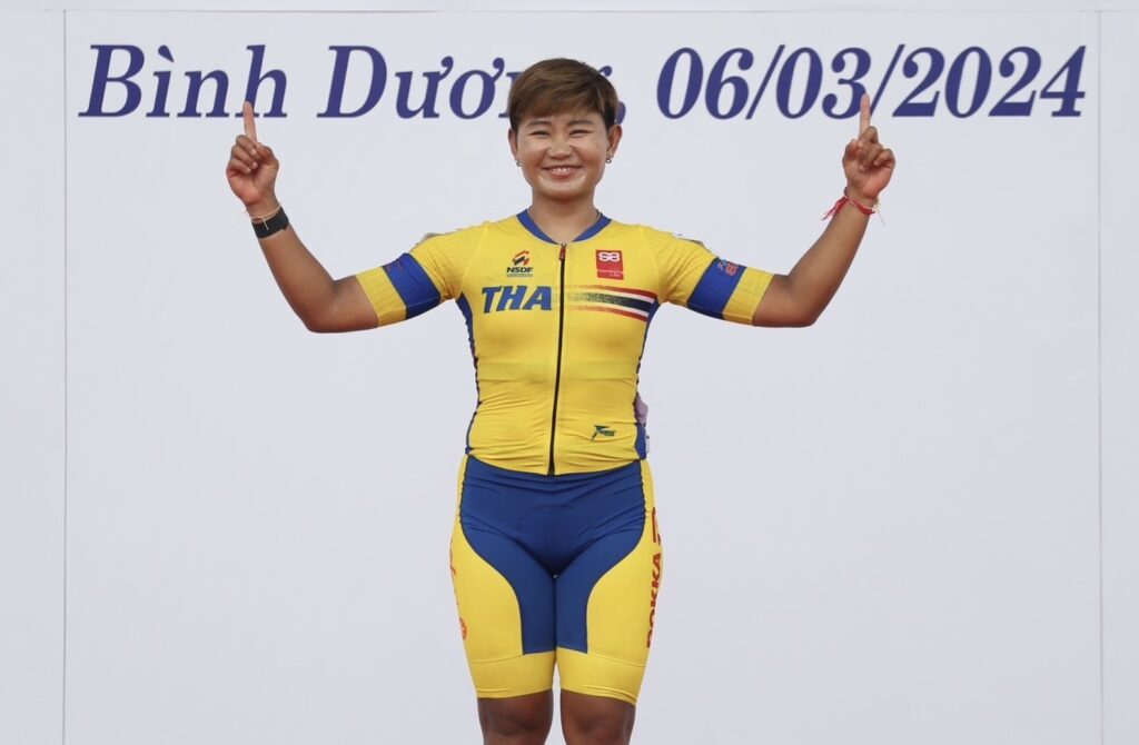 “บีช” ร.อ.หญิง จุฑาธิป มณีพันธุ์ นักปั่นน่องเหล็กทีมชาติไทย โชว์ความแกร่งคว้าแชมป์สเตจที่ 1 ในการแข่งขันจักรยานทางไกลที่เวียดนาม