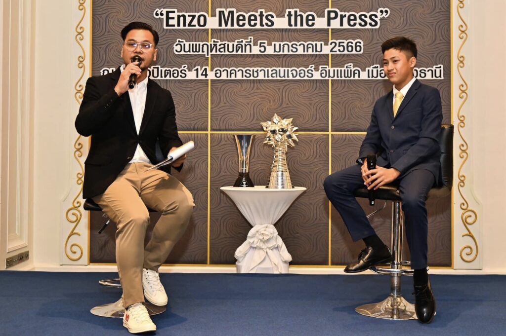 เมื่อวันที่ 5 ม.ค. ที่ผ่านมา ณ ห้องจูปิเตอร์ 14 อาคาร ชาเลนเจอร์ อิมแพ็ค เมืองทองธานี นายอโณทัย เอี่ยมลำเนา ประธานเจ้าหน้าที่สายการผลิต บริษัท กรังด์ปรีซ์อินเตอร์เนชั่นแนล จำกัด (มหาชน) จัดแถลงข่าวงาน “Enzo Meets the Press”  โดยมี “ต๊อด” ปิติ ภิรมย์ภักดี กรรมการรองกรรมการผู้จัดการใหญ่ บริษัท บุญรอด บริวเวอรี จำกัด ร่วมให้การต้อนรับและแสดงความยินดีกับ “เอ็นโซ่ ธารวณิชกุล” นักขับวัย 13 ปี ผู้จารึกประวัติศาสตร์คว้าแชมป์โลกรถคาร์ทฤดูกาล 2022 รุ่นจูเนียร์