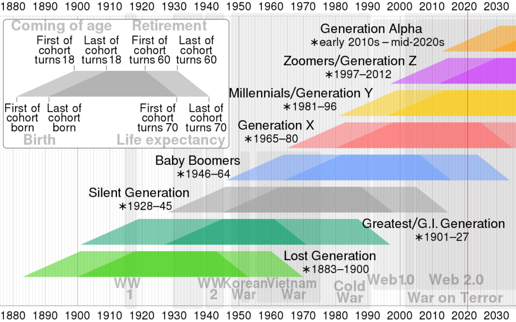 ความน่าสนใจของโครงสร้างประชากรโลกในปัจจุบันประการหนึ่งคือ เป็นช่วงเวลาที่คนจาก 5 Generation อยู่ร่วมกันในสังคมเดียวกัน ไม่ว่าจะสังคมงาน สังคมครอบครัว หรือในสังคมสาธารณะทั่วไป ปรากฏการณ์ที่เกิดขึ้นก็เพราะโลกในช่วง 100 ปีที่ผ่านมานั้นมีการเปลี่ยนแปลงที่รวดเร็วมาก การเปลี่ยนแปลงของเทคโนโลยี การเกิดขึ้นของเหตุการณ์สำคัญของโลก ทำให้กรอบความคิดเชิงสังคม และค่านิยมของคนแต่ละรุ่นมีความแตกต่างกันออกไป