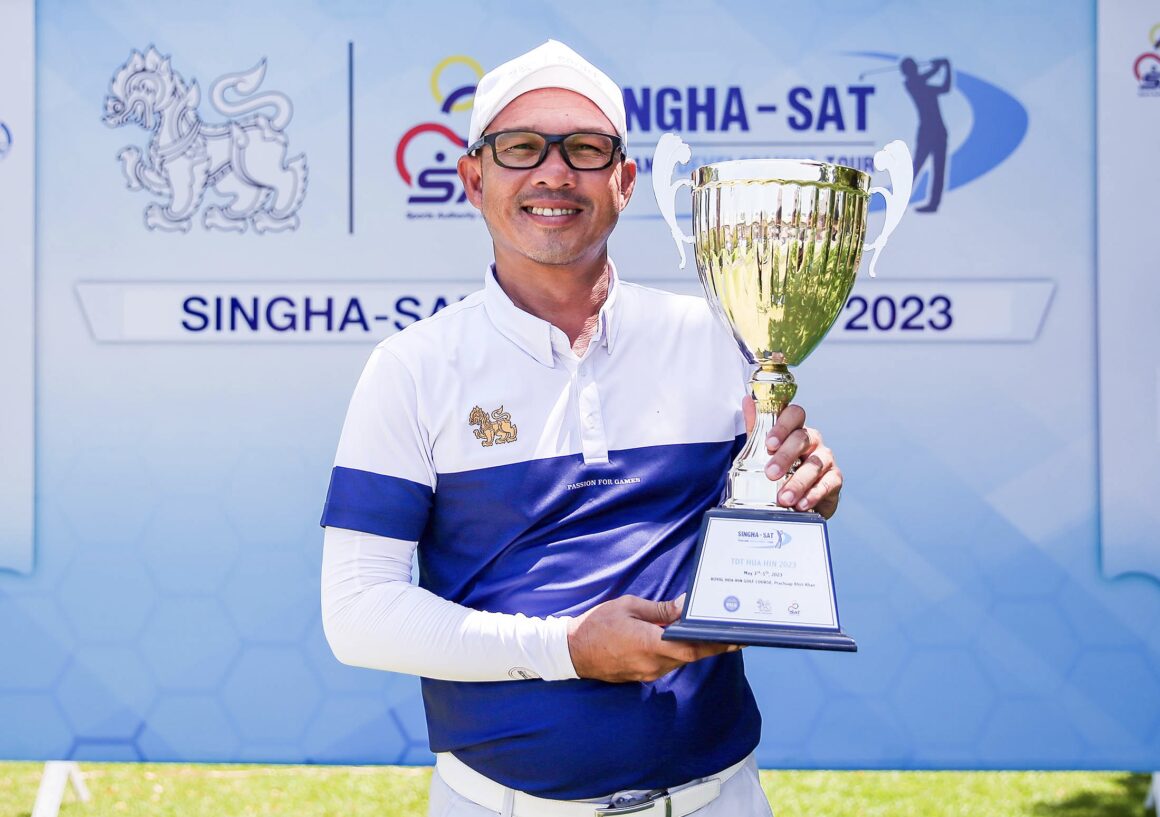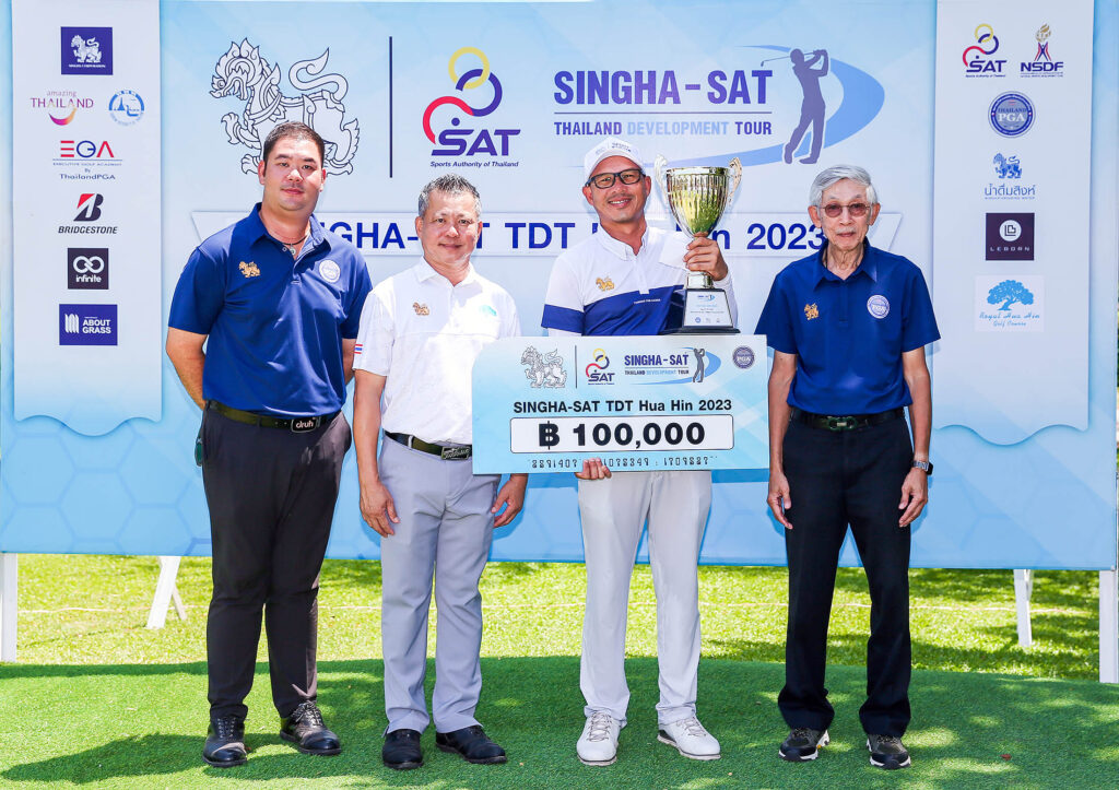 เชาวลิต ผลาผล นักกอล์ฟวัย 48 ปี จากชลบุรี พลิกเกมก่อนเพลย์ออฟชนะ ธนากร ตอสี สวิงดาวรุ่งจากกรุงเทพ คว้าแชมป์ไปครอง ในการแข่งขัน กอล์ฟอาชีพ ไทยแลนด์ ดีเวลลอปเมนท์ ทัวร์ รายการ สิงห์ เอสเอที ทีดีที หัวหิน 2023