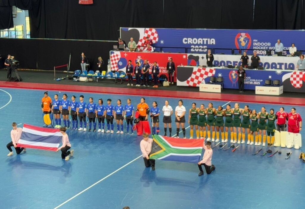 การแข่งขันฮอกกี้ 5 คนชิงแชมป์โลก 2025 ที่สนาม Zatika Arena เมือง Polec ประเทศ โครเอเชีย เมื่อวันที่ 3 ก.พ.ที่ผ่านมา โดย ฮอกกี้สาวไทย ซึ่งได้สิทธิ์ลงทำการแข่งขันเป็นปีแรก ลงสนามพบกับ ทีมฮอกดี้สาวจากแอฟริกาใต้ ทีมอันดับ 7 ของโลก ซึ่งมี พล.ร.อ.จีรพัฒน์ ปาณสกุณ เป็นผู้จัดการทีมควบคุมนักกีฬาเข้าร่วมแข่งขัน
