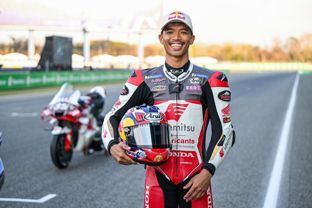 ยอดนักบิดโมโตจีพีชาวไทยคนแรกในประวัติศาสตร์จากโครงการ “ฮอนด้า เรซ ทู เดอะ ดรีม” ประเดิมลงสนามกับรถแข่ง Honda RC213V หมายเลข 35 คู่ใจอย่างเป็นทางการครั้งแรกในศึก โมโตจีพี 2025 สนามแรก รายการ พีที กรังด์ปรีซ์ ออฟ ไทยแลนด์ เมื่อช่วงสายวันศุกร์ที่ 28 กุมภาพันธ์ที่ผ่านมา ที่ สนามช้าง อินเตอร์เนชั่นแนล เซอร์กิต จ.บุรีรัมย์ ด้วยผลงานรั้งอันดับ 17 ด้วยเวลาต่อรอบ 1 นาที 30.471 วินาที โดยใช้ยางเพียงเซ็ตเดียวสำหรับจำลองการแข่งขันรอบ “สปรินต์” ตามแผนงานของทีม