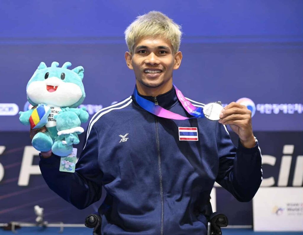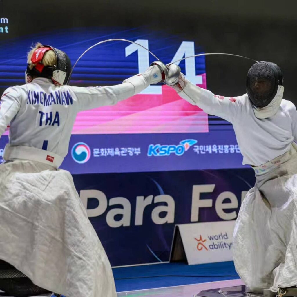 ขณะที่ วิสิทธิ์ กิ่งมะนาว เจ้าของเหรียญเงินจากพาราลิมปิก 2024 ลงแข่งขันในประเภท ดาบเอเป้ชาย คลาสบี โดยรอบชิงชนะเลิศเขาต่อสู้กับ จาง เจี่ย จากจีนอย่างสูสี ก่อนจะพ่ายไปอย่าง knapp ด้วยคะแนน 14-15 คว้าเหรียญเงินมาครองได้สำเร็จ