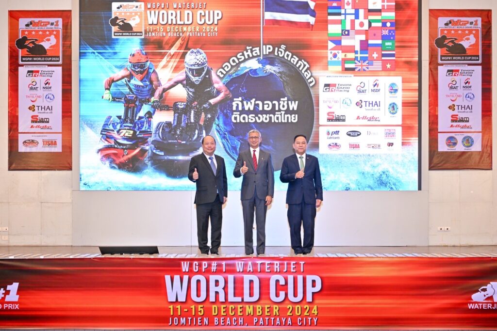 จากการแถลงข่าวร่วมกันของ นายพิมล ศรีวิกรม์ กรรมการยุทธศาสตร์ซอร์ฟพาวเวอร์แห่งชาติ พล.ต.อ.เดชณรงค์ สุทธิชาญบัญชา นายกสมาคมกีฬาเจ็ตสกีแห่งประเทศไทยฯ และนายปริเขต สืบสหการ ผู้อำนวยการทัวร์นาเม้นท์กีฬาเจ็ตสกีโลก WGP#1 ในหัวข้อ “เจาะลึกความสำเร็จกีฬา IP” ณ ห้องแถลงข่าวชั้น 25 การกีฬาแห่งประเทศไทย