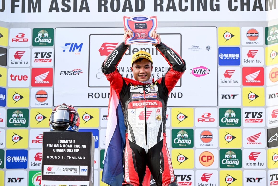 ศึก เอเชีย โร้ด เรซซิ่ง 2025 สนามแรก เรซที่ 2 “ชิพ-นครินทร์” ยอดนักบิดไทย หมายเลข 41 จาก “ฮอนด้า เรซซิ่ง ไทยแลนด์” ตอกย้ำผลงานเหนือชั้นอย่างต่อเนื่อง บิดรถแข่ง Honda CBR1000RR-R คว้าชัยชนะ รุ่นเอเชียซูเปอร์ไบค์ 1000 ซีซี. (ASB1000) หลังจากคว้าชัยชนะในเรซที่ 1 มาครองได้อย่างสุดสะใจกองเชียร์ ครองจ่าฝูงรุ่นใหญ่สุด โดยเก็บคะแนนเต็มได้ทั้ง 2 เรซ มีทั้งสิ้น 50 คะแนน