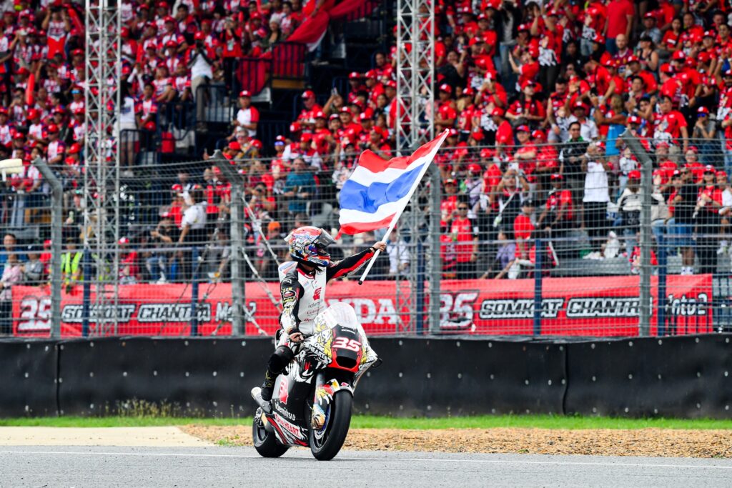 ยอดนักบิดขวัญใจชาวไทยเจ้าของหมายเลข 35 จาก อิเดมิตสึ ฮอนด้า ทีม เอเชีย ฝืนอาการบาดเจ็บคว้ากริดที่ 13 ในการออกสตาร์ท ก่อนไล่แซงขึ้นมาอยู่อันดับ 4 มีโอกาสขึ้นโพเดียมโฮมเรซ