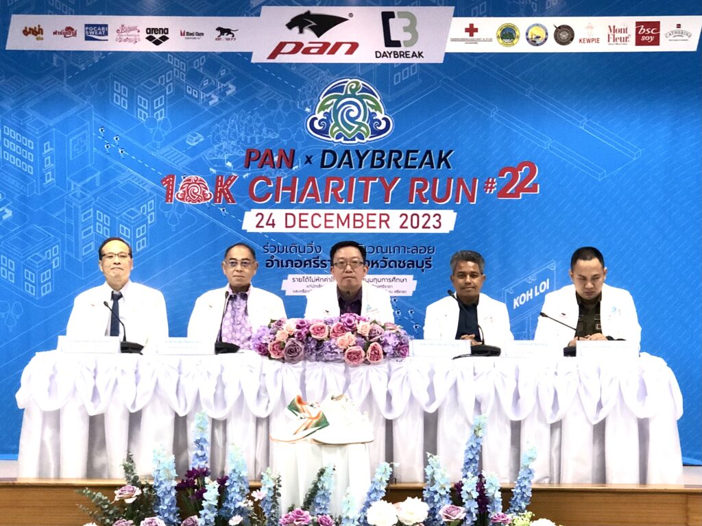 เมื่อวันที่ 5 ตุลาคม 2566 ที่ห้องแถลงข่าว อาคารเกษตรสนิทวงศ์ โรงพยาบาลสมเด็จพระบรมราชเทวี ณ ศรีราชา ได้มีการจัดงานแถลงข่าววิ่งเพื่อการกุศล “PAN x DAYBREAK 10K CHARITY RUN 2023” โดยมี นายวรจักร สถาพรภิญโญ นายอำเภอเมืองศรีราชา เป็นประธาน ร่วมกับ นายสมมาต ขุนเศษฐ ประธานกรรมการบริหาร บริษัท เเพนเอเซียฟุตเเวร์ จำกัด (มหาชน)