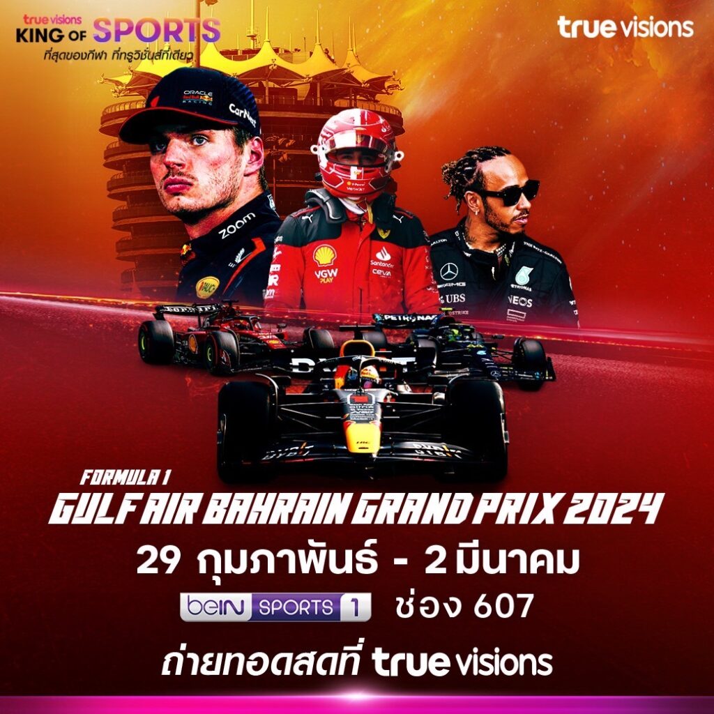 ทั้งนี้ ทรูวิชั่นส์ ตอกย้ำการเป็นผู้นำคอนเทนต์กีฬาระดับโลก เอาใจแฟน ๆ กีฬาความเร็ว ด้วยการถ่ายทอดสดตลอดฤดูกาล 2024 โดยจะประเดิมกันด้วย บาห์เรน กรังด์ปรีซ์ เริ่มตั้งแต่วันที่ 29 กุมภาพันธ์ – 2 มีนาคมนี้ ทางช่อง beIN Sports 1 (607)