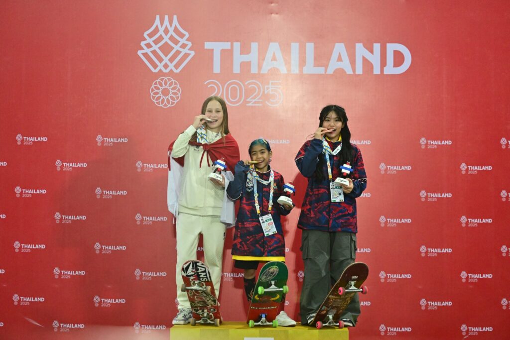 การแข่งขันสเก็ตบอร์ด ในมหกรรมกีฬาซีเกมส์ ครั้งที่ 33 ที่สนามกีฬาเอ็กซ์ตรีม การกีฬาแห่งประเทศไทย หัวหมาก เมื่อวันที่ 14 ธันวาคม 2568 เดินหน้าสู่การชิงชัยในประเภทสตรีท