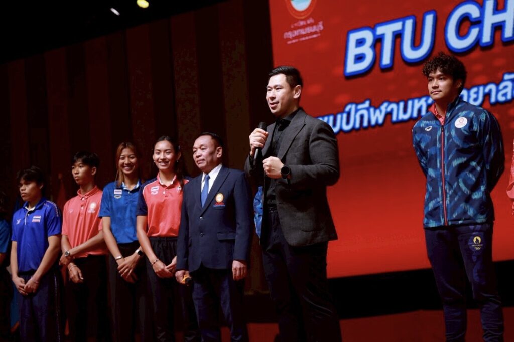 “ฉลามจัส-น้องหญิง” พร้อมแชมป์กีฬามหาลัย 6 สมัย ร่วมปฐมนิเทศน์ ต้อนรับนักศึกษาใหม่ มกธ.
