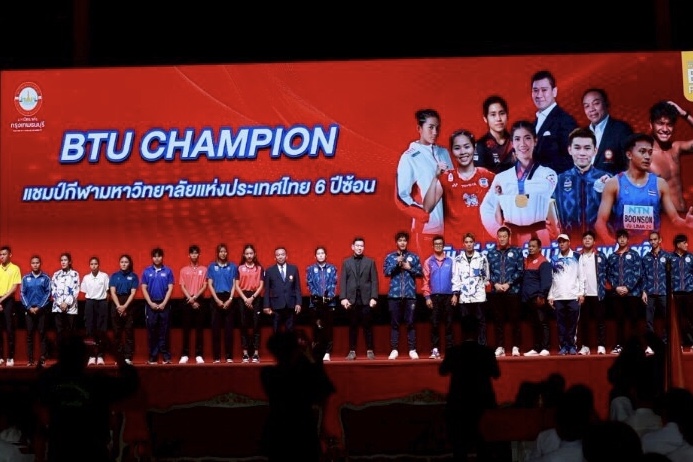 กิจกรรมปฐมนิเทศดังกล่าวมี รศ. ดร.ดวงฤทธิ์ เบ็ญจาธิกุล ชัยรุ่งเรือง สมาชิกสภาผู้แทนราษฎร และ อ.พีระ จันทร ผู้อำนวยการสำนักกีฬา นำทีมแชมป์ 6 สมัย กีฬามหาวิทยารลัยแห่งประเทศไทย นำโดย “ฉลามจัส” ดุลยวัต แก้วศรียงค์ นักกีฬาว่ายน้ำทีมชาติไทย, “หญิง” สุธาสินี เสวตรบุตร นักกีฬาเทเบิลเทนนิสทีมชาติไทย, จอร์นนาซาน โบเดมาร นักกีฬาหมากกระดานทีมชาติไทย, ภูตะวัน โสภา นักกีฬาตะกร้อทีมชาติไทย, ธเนศ นิตุธร นักกีฬามวยไทย Soft Power และทัพนักกีฬากว่า 40 คน เข้าร่วม สร้างบรรยากาศของความภาคภูมิใจปรากฏชัดเจนที่ทำให้มหาวิทยาลัย เป็นแชมป์ถึง 6 สมัยติดต่อกัน