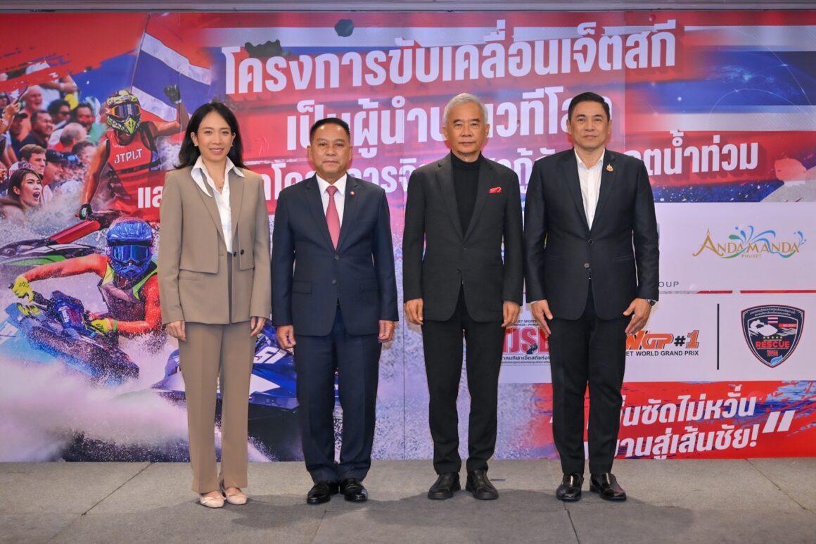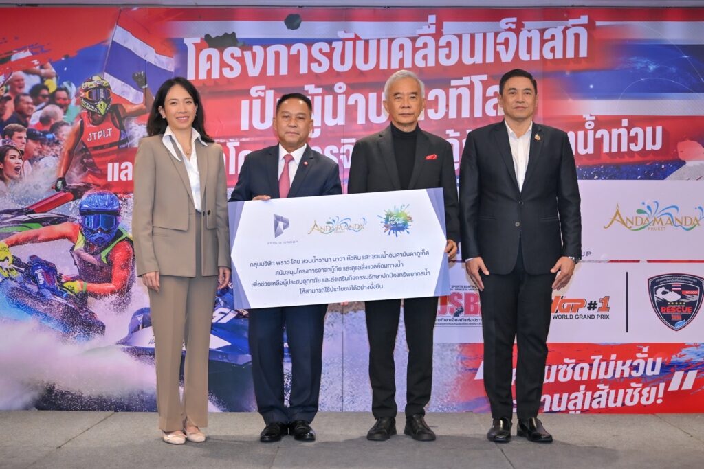 คุณพราวพุธ ลิปตพัลลภ กรรมการบริหารกลุ่มบริษัทพราว และ บริษัท พราว เรียล เอสเตท จำกัด (มหาชน) กล่าวเสริมว่า “ไม่คาดคิดว่าเจ็ตสกีจะสามารถสร้างประโยชน์ในด้านงานกู้ภัยได้อย่างมีศักยภาพขนาดนี้ ได้ทราบข้อมูลว่า เจ็ตสกีไม่มีใบพัดด้านนอกตัวเรือ และสามารถฝ่ากระแสน้ำแรงได้ดีมาก โดยเฉพาะในสถานการณ์วิกฤตน้ำท่วมที่ผ่านมา ท่านนายกสมาคมฯ ได้ถอดบทเรียนและวางแผนดำเนินโครงการที่สามารถสนับสนุนภาครัฐในการช่วยเหลือประชาชนได้อย่างมีระบบ นี่จึงเป็นที่มาของ ‘โครงการอาสากู้ภัยและดูแลสิ่งแวดล้อมทางน้ำซึ่งกลุ่มบริษัทพราวเห็นถึงความสำคัญ และยินดีอย่างยิ่งที่ได้ร่วมเป็นส่วนหนึ่งในการขับเคลื่อนโครงการนี้ให้เกิดขึ้นจริง เรามีความตั้งใจดูแลพื้นที่ชุมชนเและพื้นที่เศรฐกิจ เพราะประเทศไทยต้องเจอกับปัญหาอุทกภัยทุกปี ส่งผลกระทบถึงการท่องเที่ยวโดยตรง ซึ่งสร้างปัญหาให้แก่พี่น้องประชาชน เรามองว่า กีฬาเจ็ตสกี ไม่ได้มีแค่บทบาทในการแข่งขันหรือส่งเสริมเศรษฐกิจเท่านั้น แต่ยังสามารถต่อยอดให้เกิดคุณค่าทางสังคมได้อย่างเป็นรูปธรรม โครงการนี้จึงไม่เพียงแค่ช่วยเหลือผู้ประสบอุทกภัย แต่ยังเป็นต้นแบบของการผสานพลังระหว่างภาคธุรกิจ กีฬา และจิตอาสา