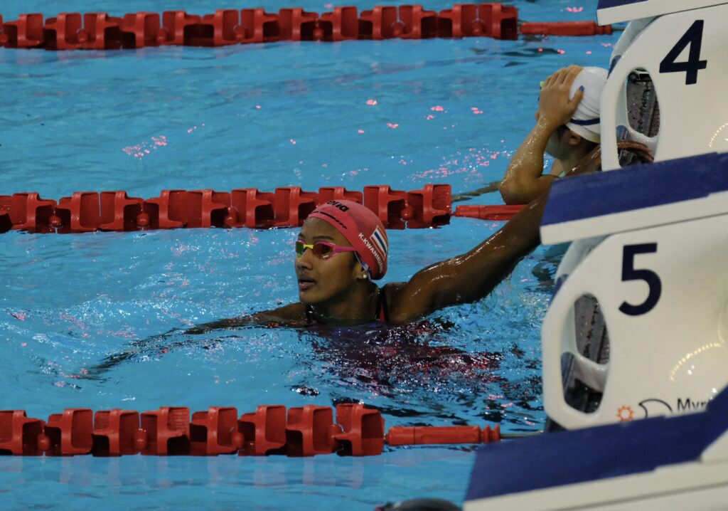 ขณะที่ กบ 50 ม.หญิง “เงือกจอย” เจนจิรา ศรีสอาด พยายามเร่งเครื่องในช่วงท้ายแต่ก็ไม่ทัน แพ้ เลทิเทีย ซิม จากสิงคโปร์ ที่แตะขอบสระเป็นคนแรกทำเวลา 31.03 วินาที ทำลายสถิติเก่าของเจนจิรา ส่วน เจนจิรา ได้เหรียญเงินทำเวลา 31.52 วินาที ขณะที่เหรียญทองแดงเป็นของ “เงือกออย” เสาวนีย์ บุญอำไพ กับ ฝี จิง อัน จากมาเลเซีย ทำเวลาเท่ากันที่ 31.71 วินาที