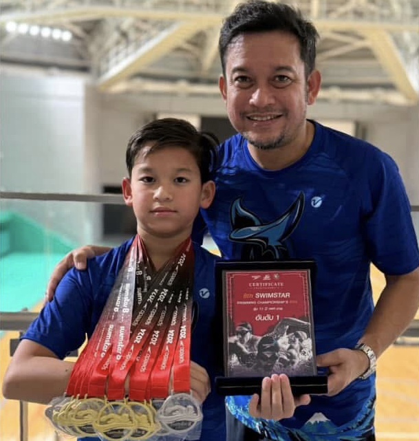 ฉลามดาวรุ่งจาก Stingray Swimming Team โชว์ผลงานกระหึ่มสระในรุ่น 11 ปีชาย เมื่อกวาดมาได้ถึง 6 เหรียญทอง 3 เหรียญเงิน ในรายการ “8th Swim Star Swimming Championships 2024” ณ สระว่ายน้ำ Verso International School ระหว่างวันที่ 14-15 ธันวาคม 2567 ที่ผ่านมา