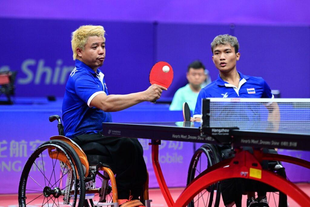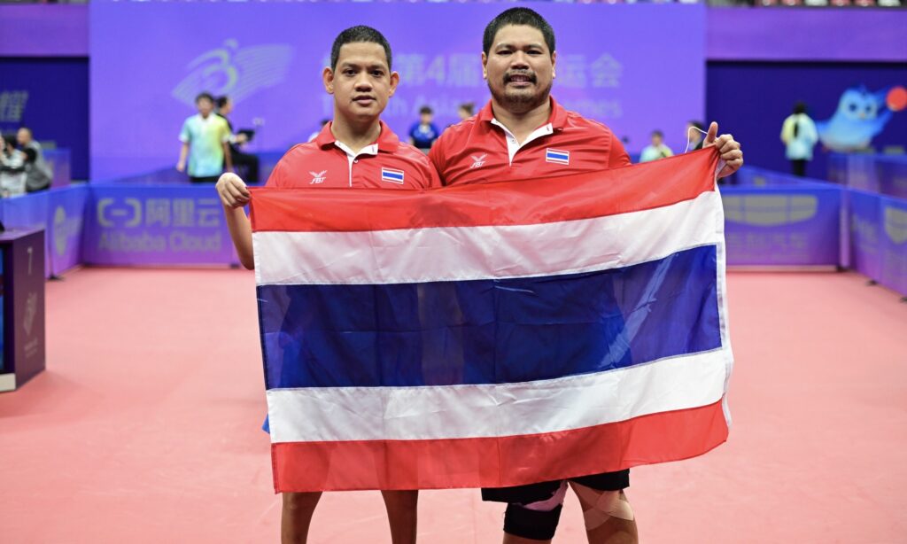การแข่งขันเทเบิลเทนนิส เอเชียนพาราเกมส์ ครั้งที่ 4 ที่ สนาม โรงยิมเนเซียมศูนย์กีฬากงซู เมืองหางโจว สาธารณรัฐประชาชนจีน เมื่อ 27 ตุลาคม 66 ประเภทชายคู่ คลาส14 รอบชิงชนะเลิศ รุ่งโรจน์ ไทยนิยม เจ้าของเหรียญทองชายเดี่ยว จับคู่กับ พิสิษฐ์ หวังผลพัฒนาศิริ ตกเป็นรอง เก ลี เหลียว กับ เชา หยาง คู่หูจากจีน ไปในเกมแรก ก่อนจะมาเก็บชัยชนะ 3 เกมรวด แซงเอาชนะไป 3-1 เกม 7-11, 11-8, 11-2 และ 11-7 คว้าเหรียญทองมาครอง