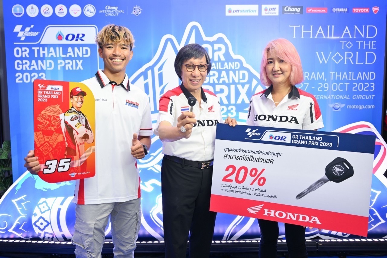 ทั้งนี้ “ฮอนด้า” ประกาศมอบประสบการณ์การแข่งขันระดับโลกให้กับแฟนชาวไทยที่กำลังตื่นเต้นกับ “โออาร์ ไทยแลนด์ กรังด์ปรีซ์ 2023” ซึ่งจะเกิดขึ้นในวันที่ 27 – 29 ตุลาคม 2566 โดยเริ่มจากการส่ง ก้อง-สมเกียรติ จันทรา นักแข่งระดับโลกสายเลือดไทย ที่เติบโตมาจากโครงการ “ฮอนด้า เรซ ทู เดอะ ดรีม” ลงแข่งขัน ภายใต้สังกัด อิเดมิตสึ ฮอนด้า ทีม เอเชีย ลงแข่งขันโฮมเรซ หลังทำผลงานได้อย่างโดดเด่นต่อเนื่องตลอดช่วงที่ผ่านมา