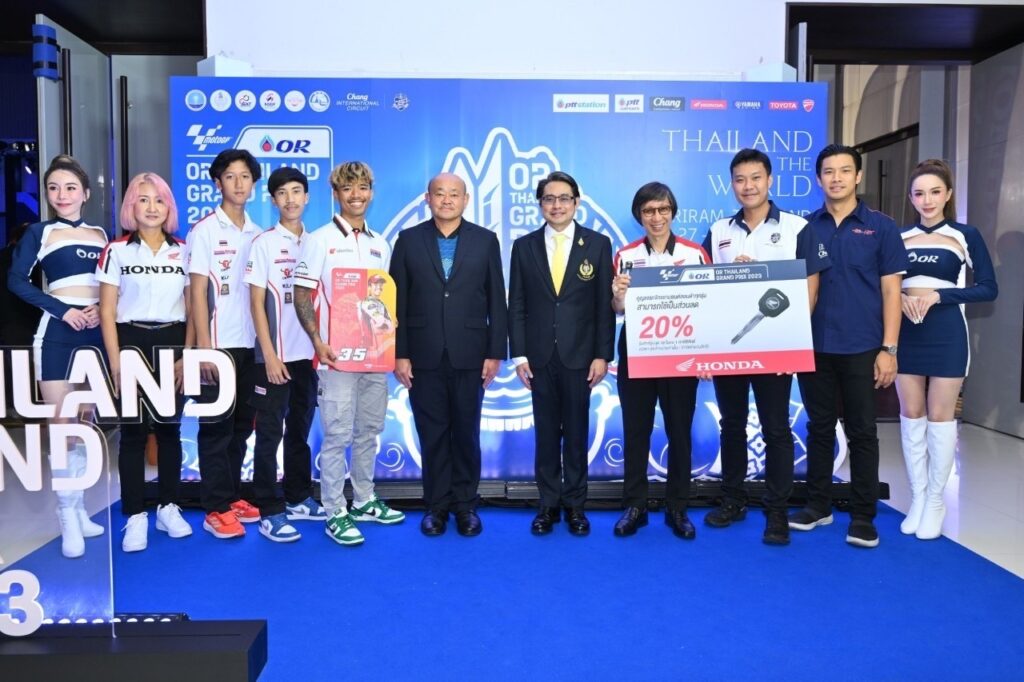 ไทยฮอนด้า ผู้นำวงการมอเตอร์สปอร์ต ประกาศร่วมศึกไทยจีพี 2023 อย่างเป็นทางการ โดย ดร.อารักษ์ พรประภา ประธาน บริษัท ไทยฮอนด้า จำกัด พร้อมด้วยคณะผู้บริหาร เข้าร่วมงานแถลงข่าวเตรียมความพร้อมการแข่งขันรถจักรยานยนต์ทางเรียบชิงแชมป์โลกรายการ “โออาร์ ไทยแลนด์ กรังด์ปรีซ์ 2023”