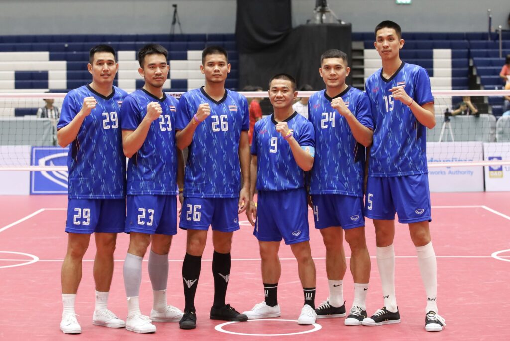 เซตแรก ทีมไทยออกสตาร์ทได้ไม่ดี พลาดท่าแพ้ไปก่อน 12-15 จากนั้นเซตสอง ไทยโดนนำตลอด จนทีมงานโค้ชต้องแก้เกม ส่ง เสกสรร ทับทอง กับ แสนไกร ดาวเรือง ลงมา จนทำคะแนนพลิกแซงเอาชนะไป 15-13 เสมอกัน 1-1 เซต