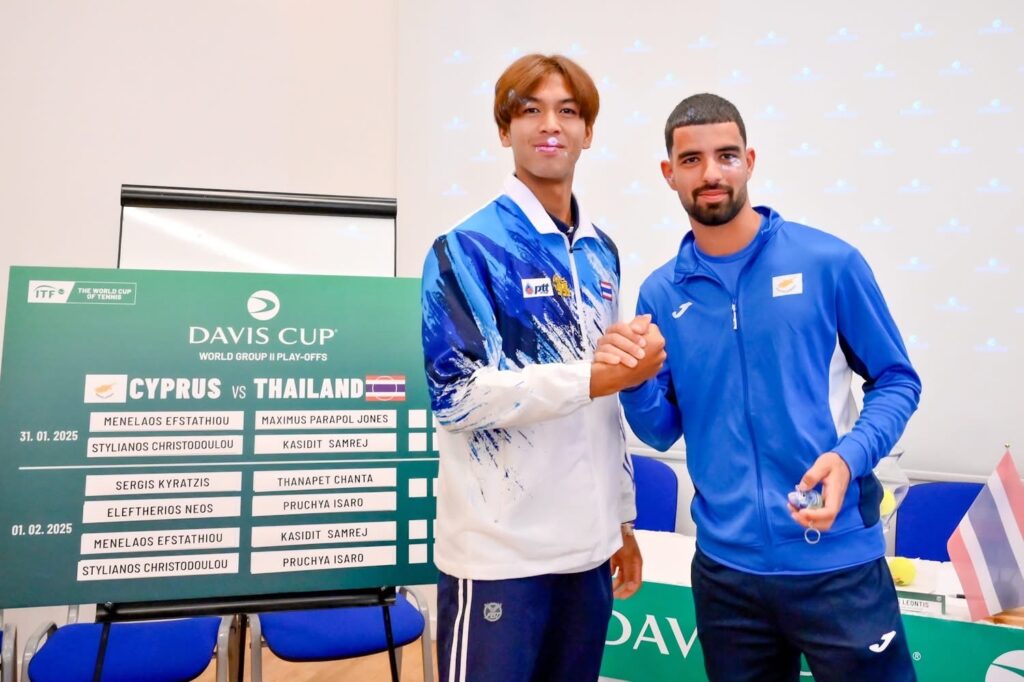 วันที่ 30 ม.ค. 2568 ณ โรงแรม เดอะ คลาสสิค กรุงนิโคเซีย สาธารณรัฐไซปรัส ได้มีพิธีประกบคู่แข่งขัน ศึกเทนนิสชิงแชมป์โลก ประเภททีมชาย รายการ “2025 เดวิสคัพ” เวิลด์ กรุ๊ป 2 เพลย์ออฟส์ ทีมชาติไทย พบ ทีมชาติไซปรัส